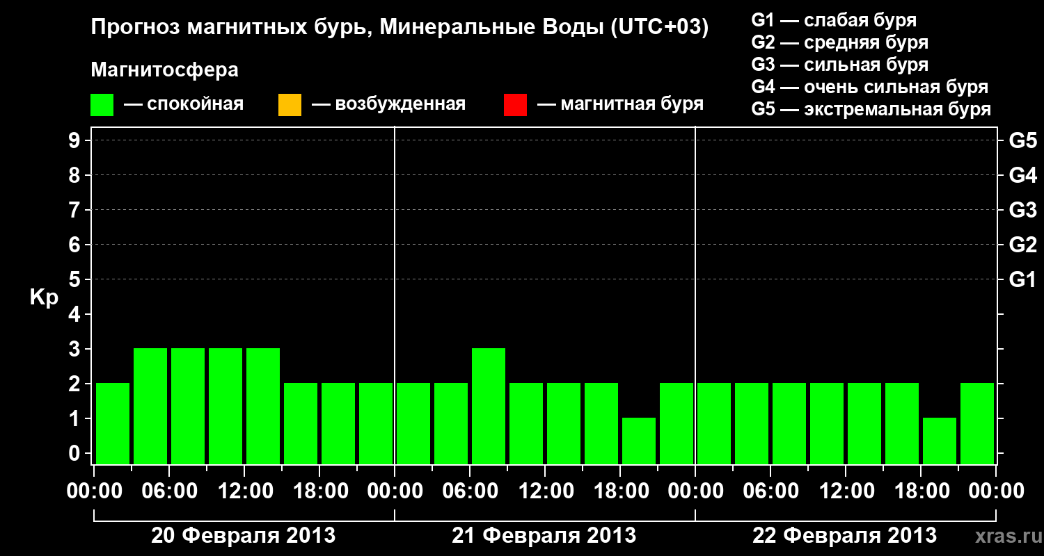Прогноз магнитных бурь Минеральных Водах — 20 февраля 2013 года