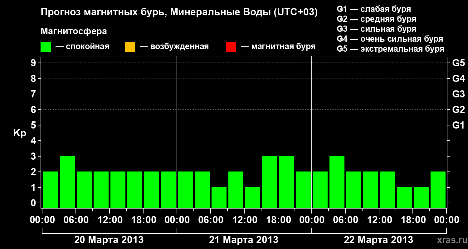 Прогноз магнитных бурь Минеральных Водах — 20 марта 2013 года