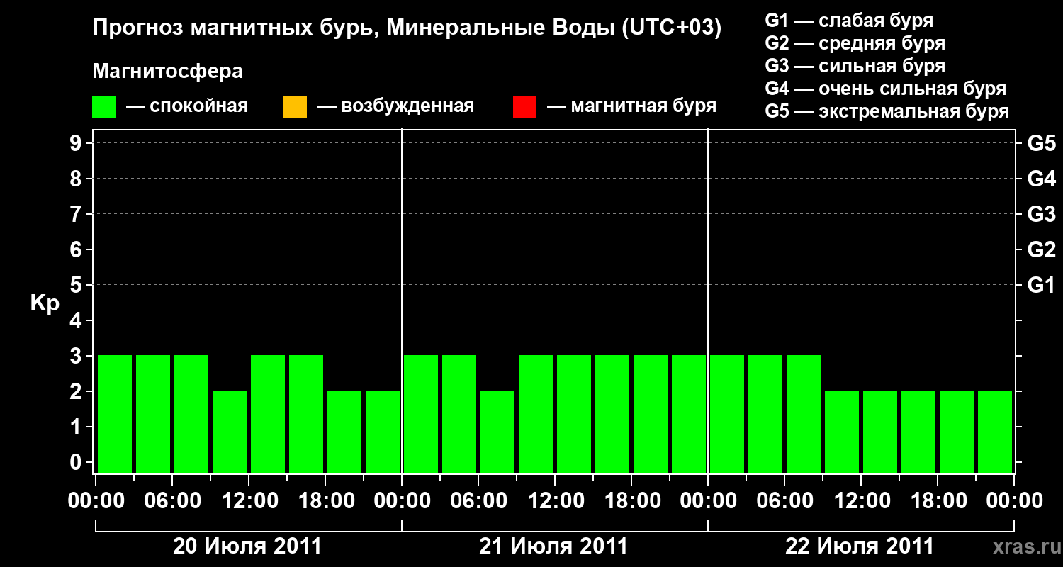 Прогноз магнитных бурь Минеральных Водах — 20 июля 2011 года