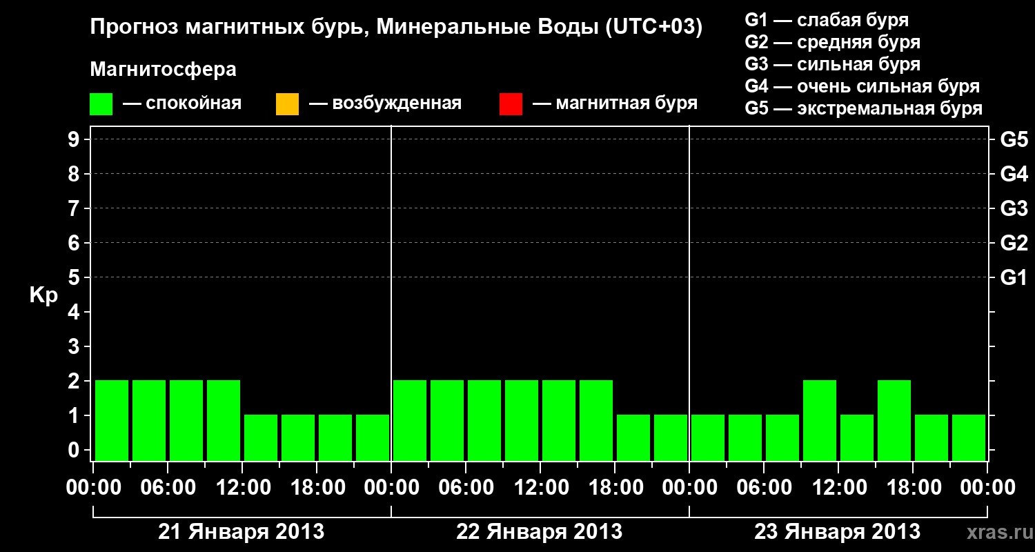 Прогноз магнитных бурь Минеральных Водах — 21 января 2013 года