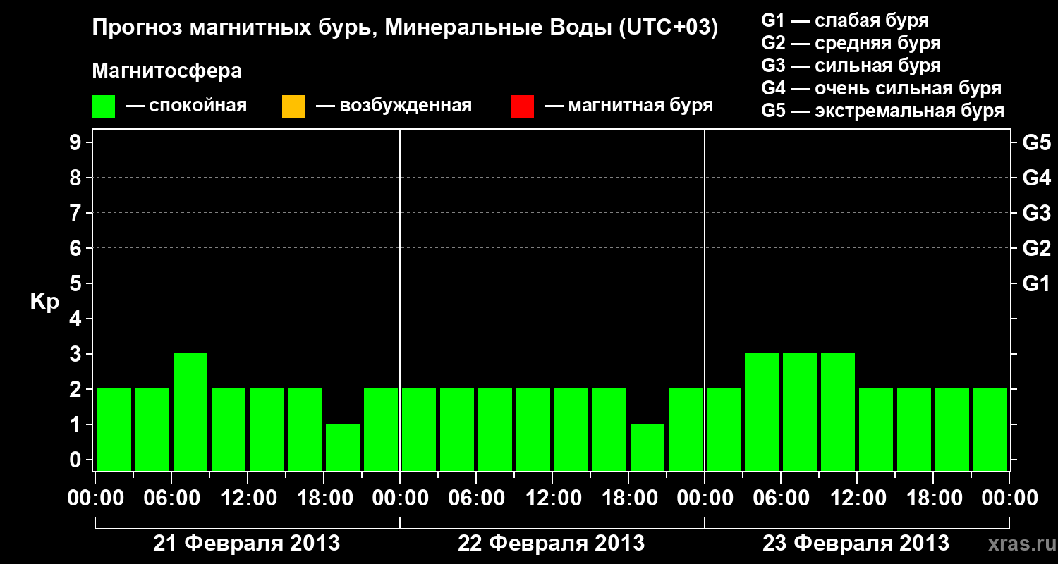 Прогноз магнитных бурь Минеральных Водах — 21 февраля 2013 года