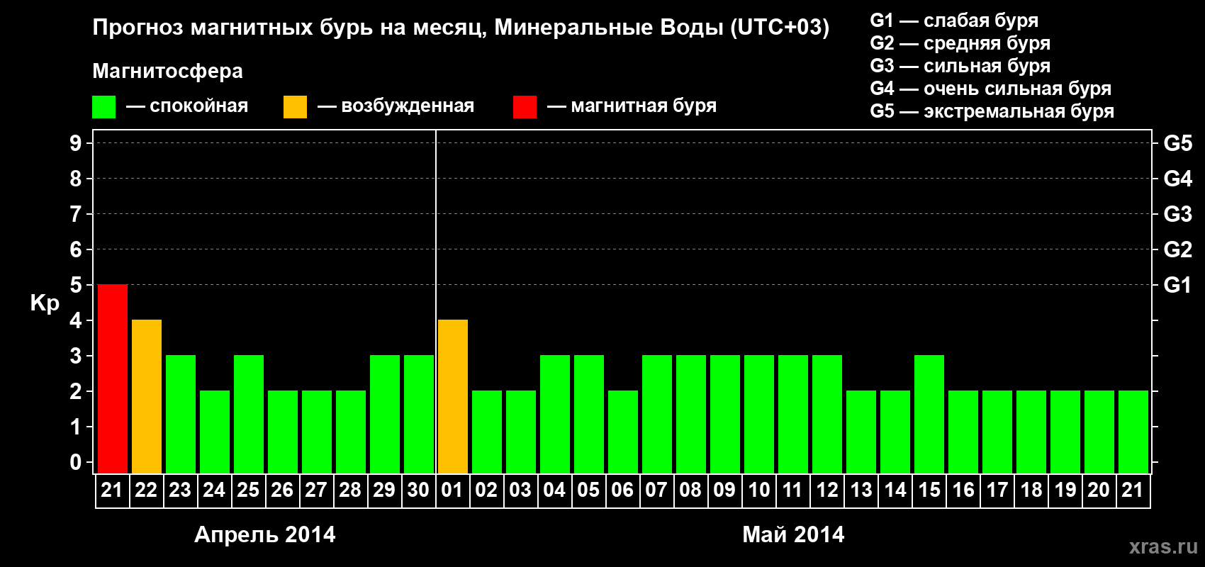 Прогноз магнитных бурь Минеральных Водах — 21 апреля 2014 года