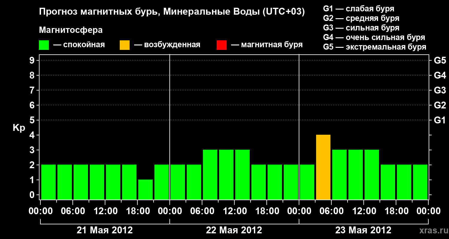 Прогноз магнитных бурь Минеральных Водах — 21 мая 2012 года