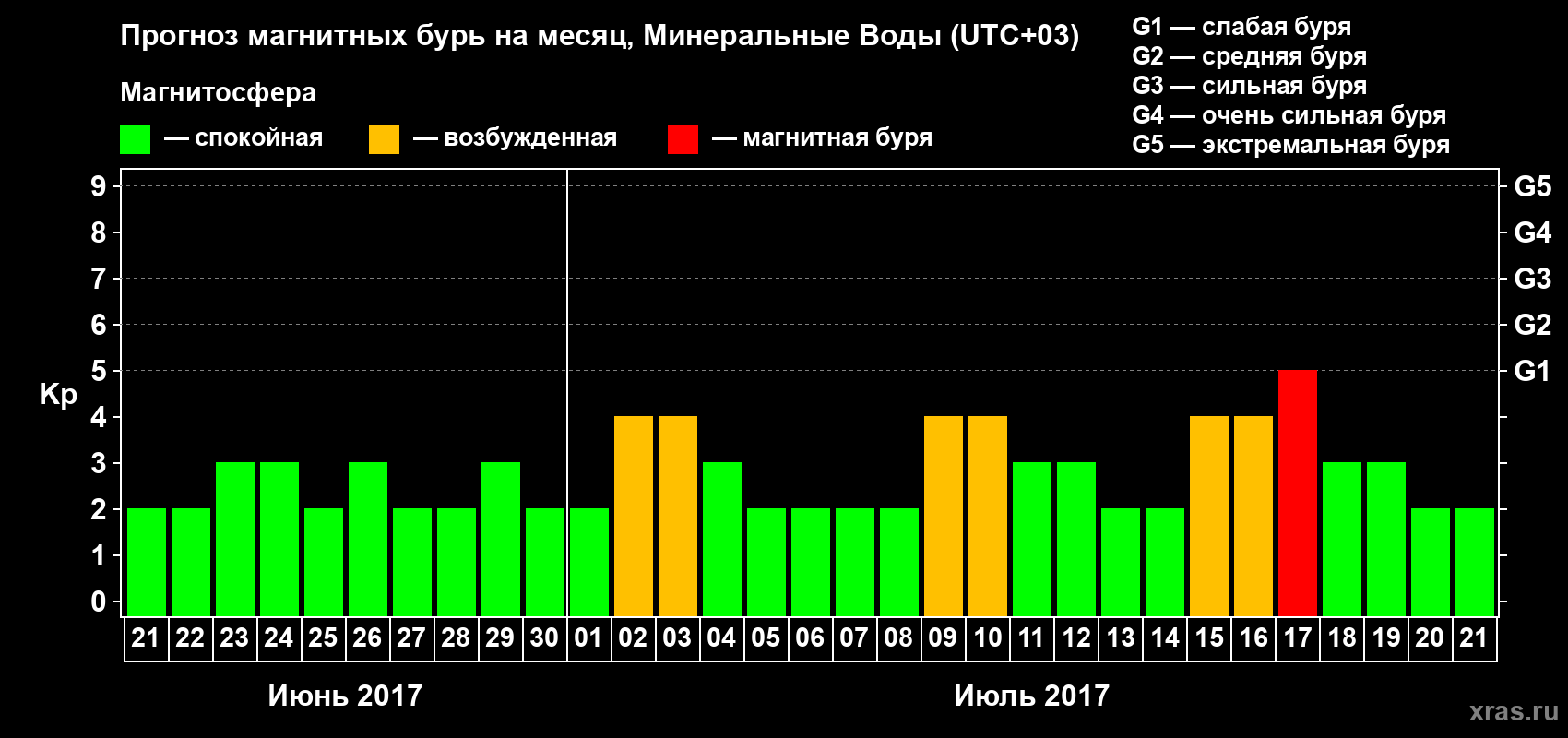 Прогноз магнитных бурь Минеральных Водах — 21 июня 2017 года
