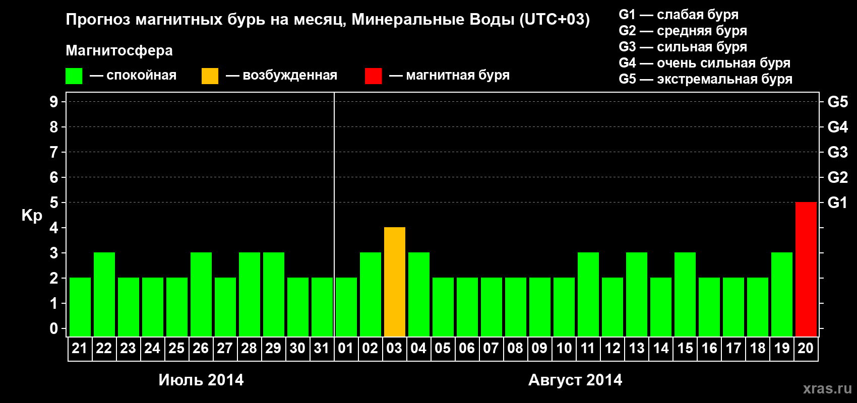 Прогноз магнитных бурь Минеральных Водах — 21 июля 2014 года