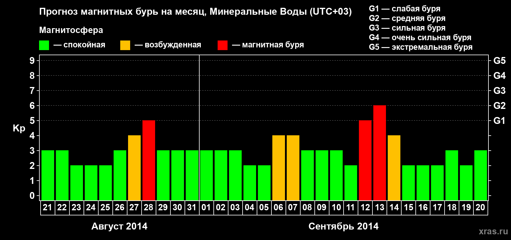 Прогноз магнитных бурь Минеральных Водах — 21 августа 2014 года