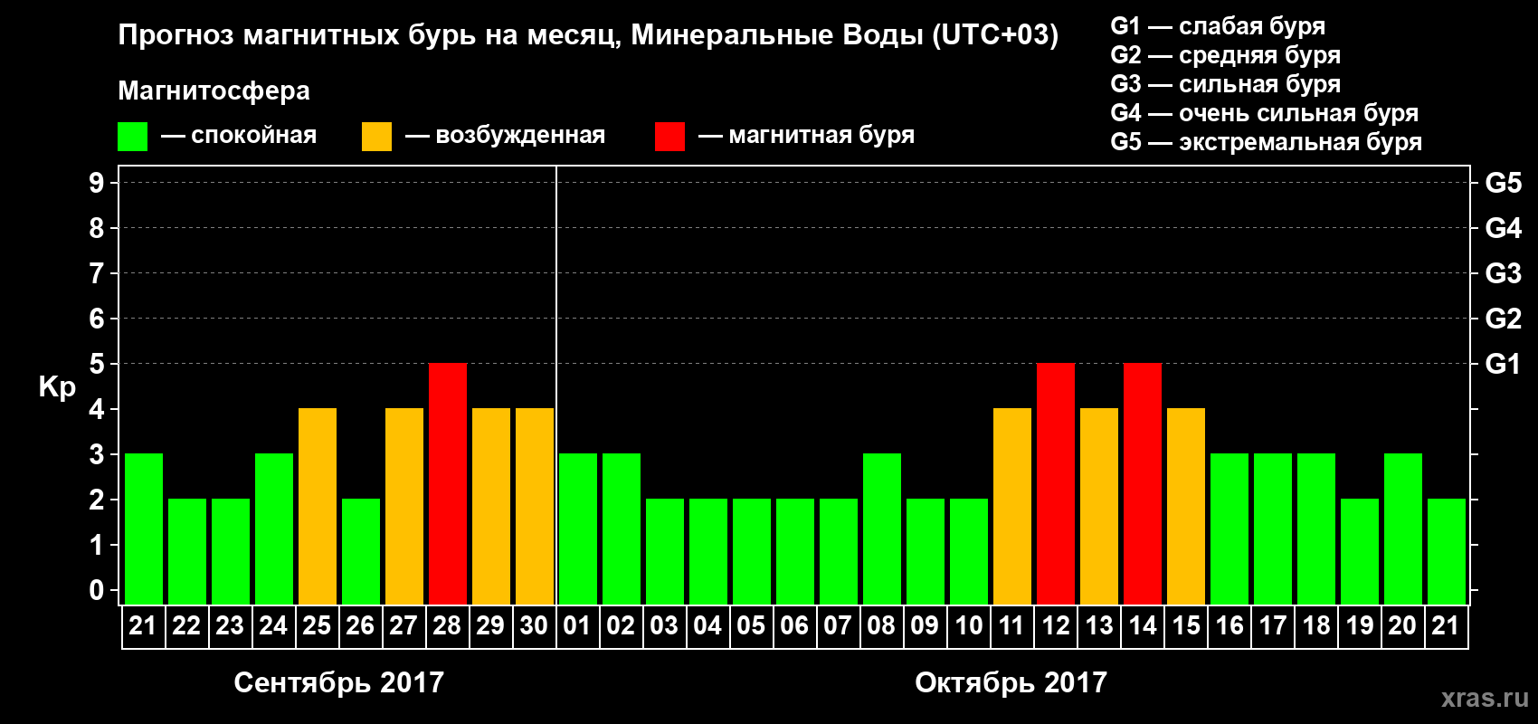 Прогноз магнитных бурь Минеральных Водах — 21 сентября 2017 года