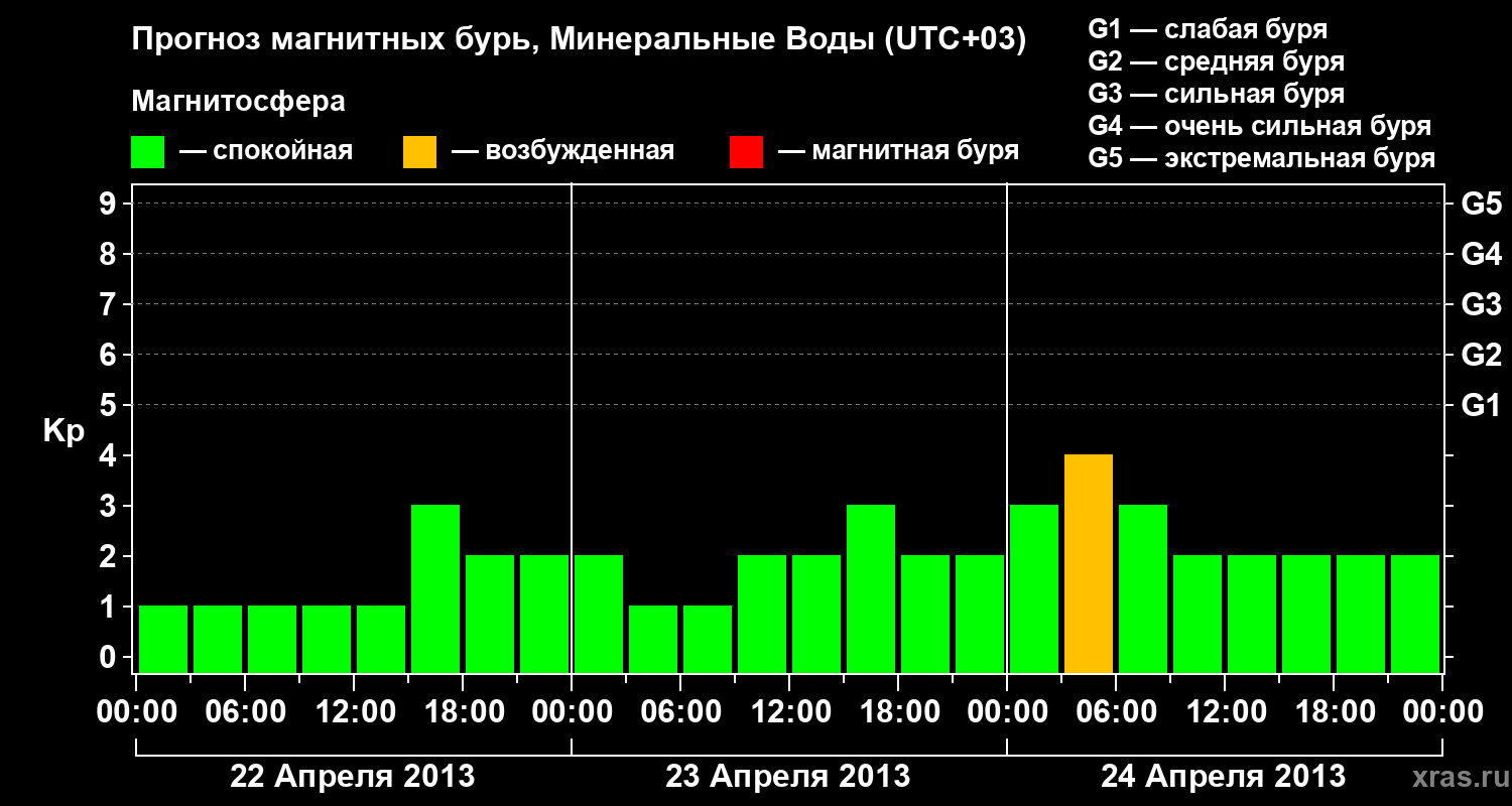 Прогноз магнитных бурь Минеральных Водах — 22 апреля 2013 года
