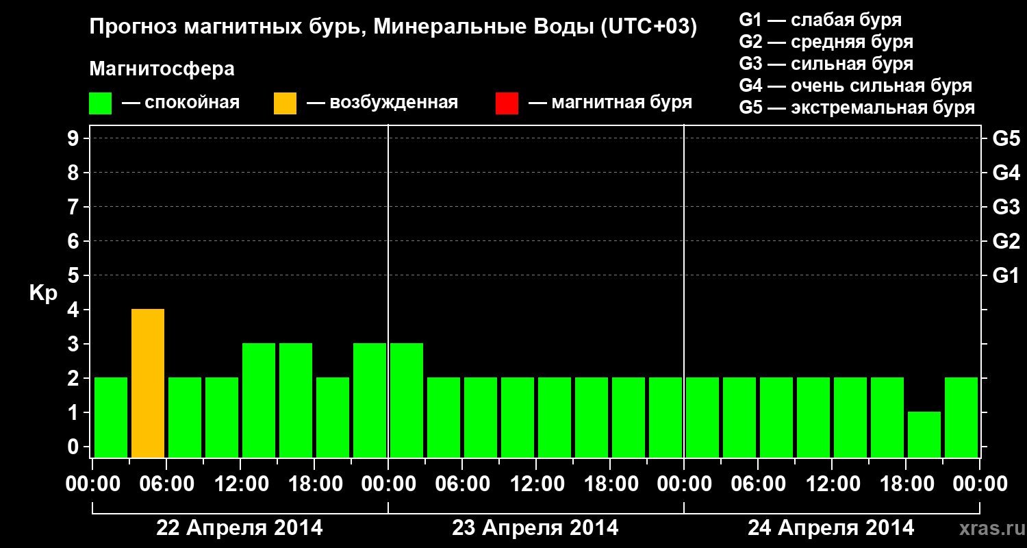 Прогноз магнитных бурь Минеральных Водах — 22 апреля 2014 года