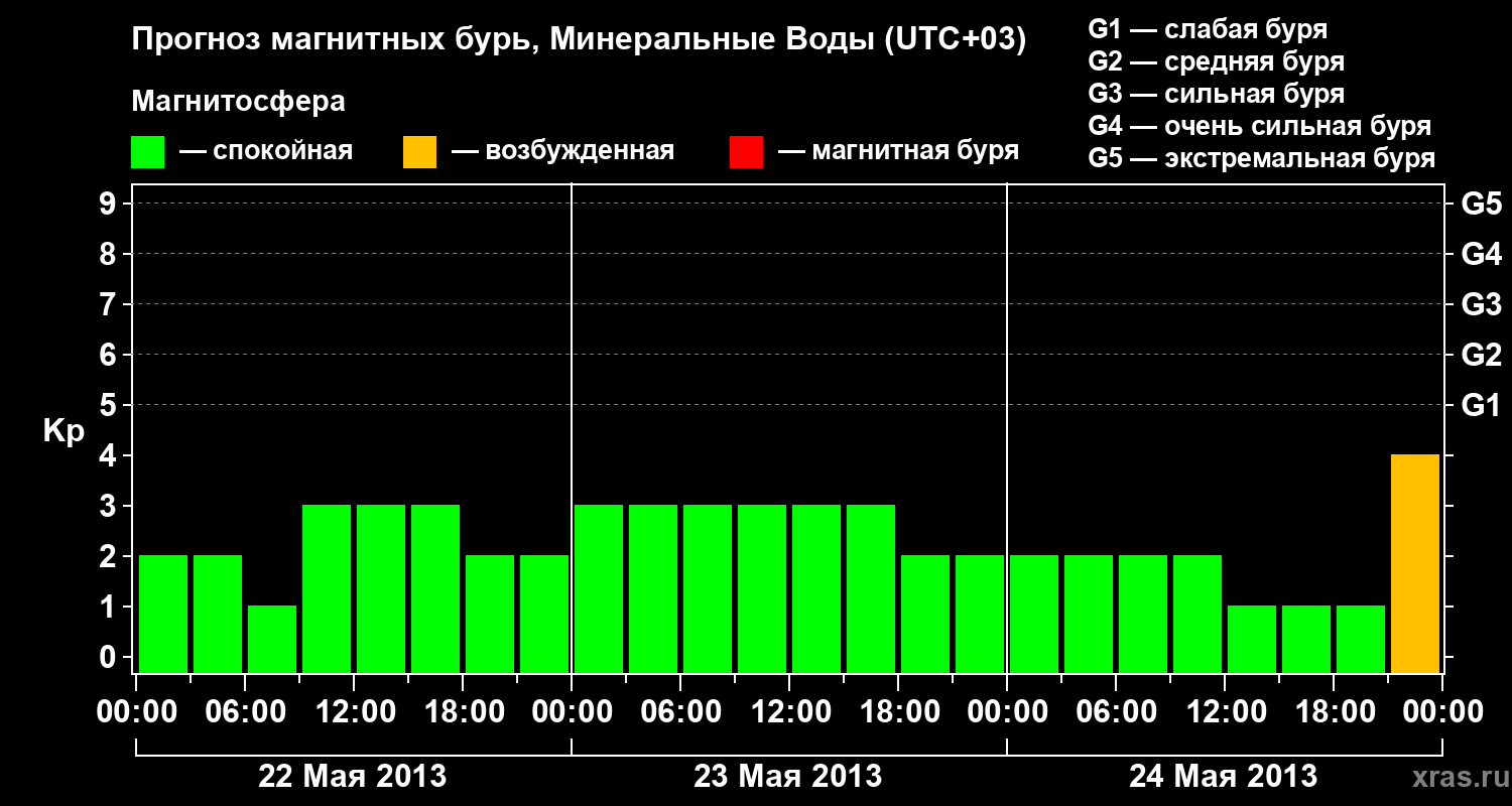 Прогноз магнитных бурь Минеральных Водах — 22 мая 2013 года