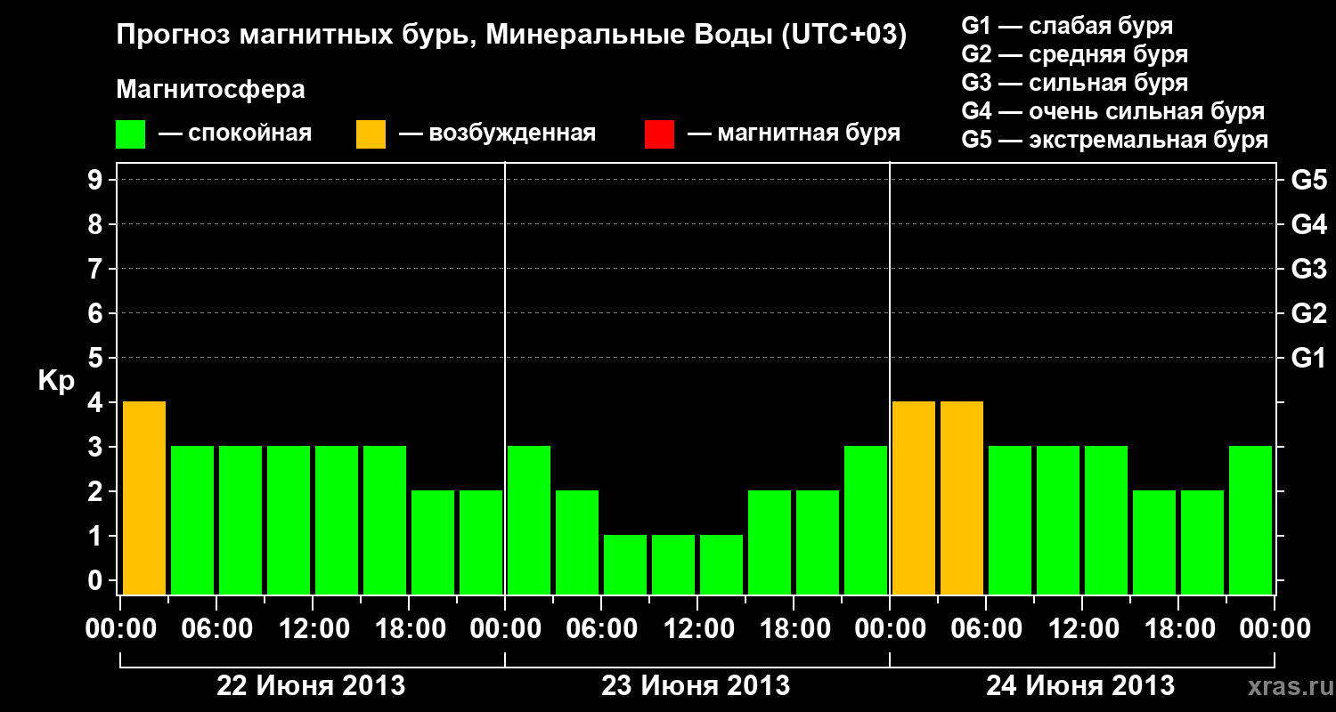 Прогноз магнитных бурь Минеральных Водах — 22 июня 2013 года