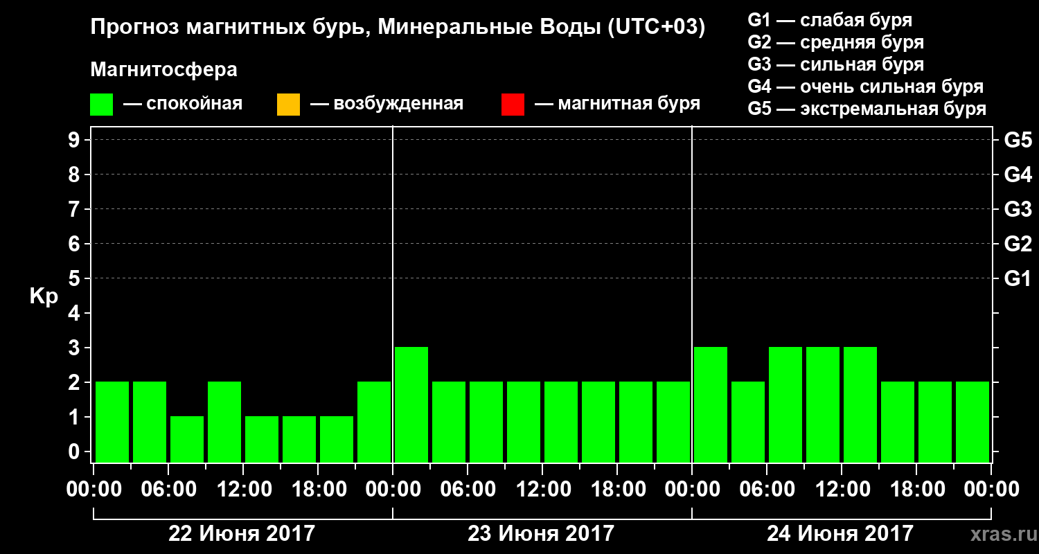 Прогноз магнитных бурь Минеральных Водах — 22 июня 2017 года