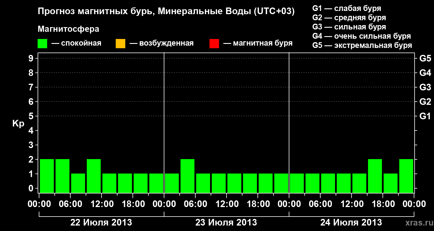 Прогноз магнитных бурь Минеральных Водах — 22 июля 2013 года