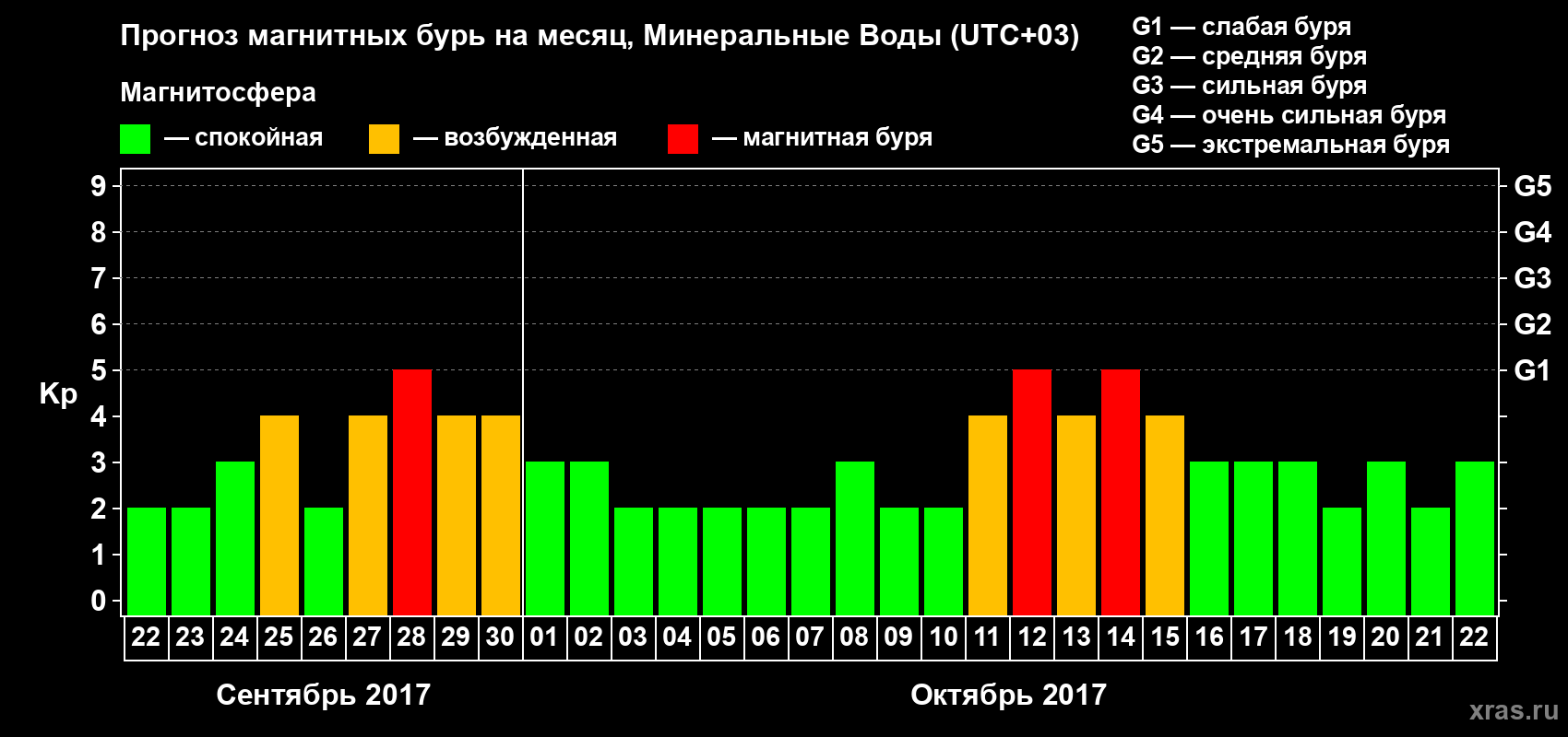 Прогноз магнитных бурь Минеральных Водах — 22 сентября 2017 года