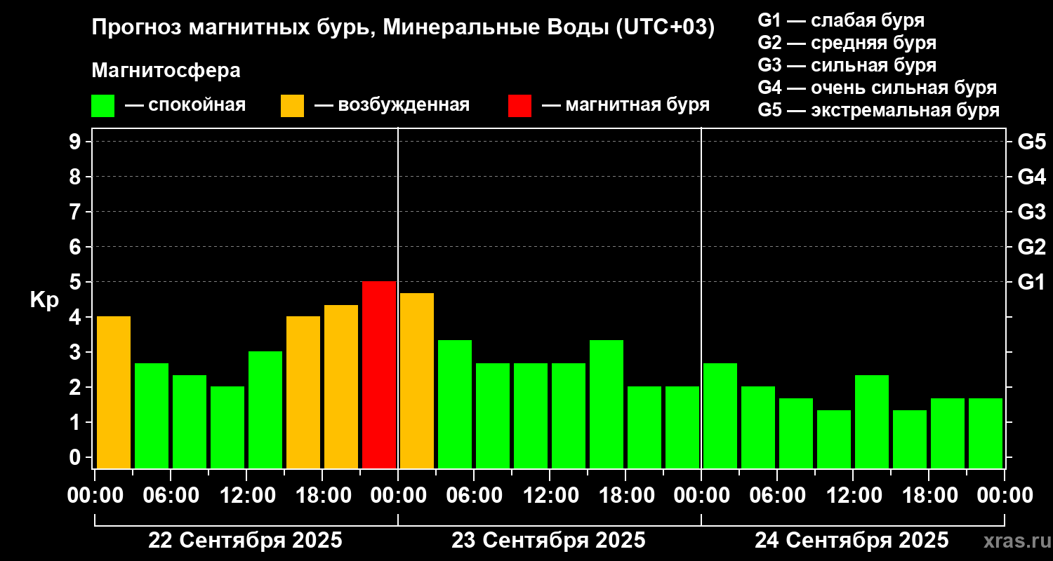 Прогноз магнитных бурь Минеральных Водах на 22 сентября 2025 года