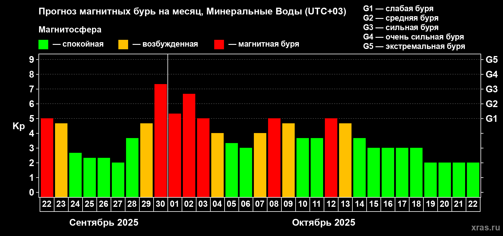 Прогноз магнитных бурь Минеральных Водах — 22 сентября 2025 года
