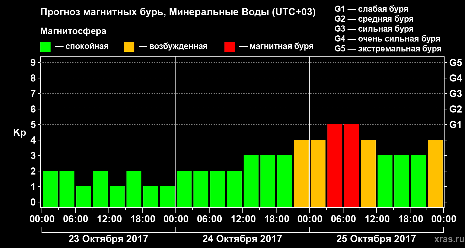 Прогноз магнитных бурь Минеральных Водах — 23 октября 2017 года