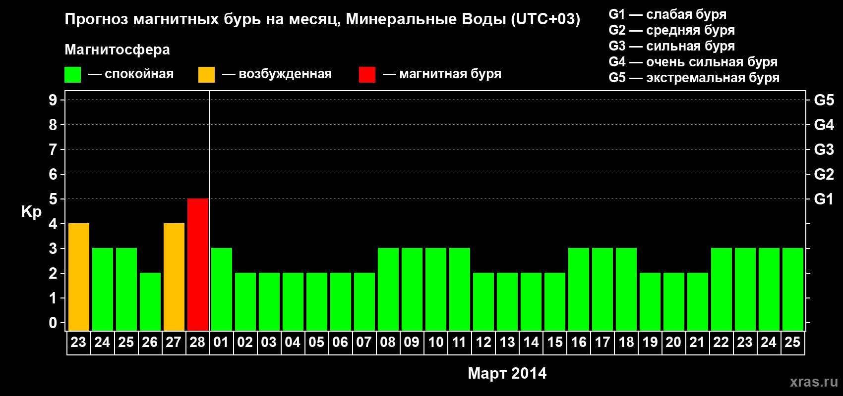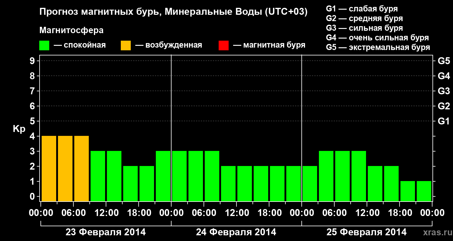 Прогноз магнитных бурь Минеральных Водах — 23 февраля 2014 года