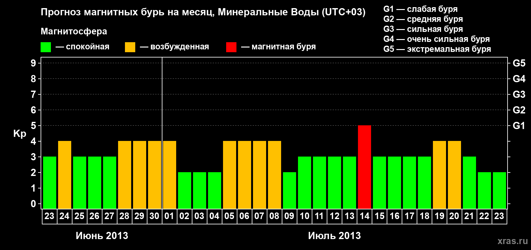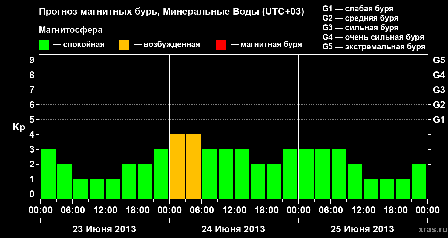 Прогноз магнитных бурь Минеральных Водах — 23 июня 2013 года