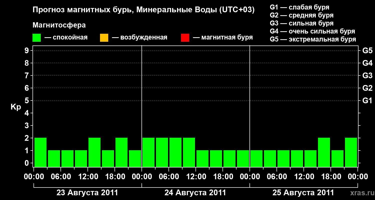 Прогноз магнитных бурь Минеральных Водах — 23 августа 2011 года
