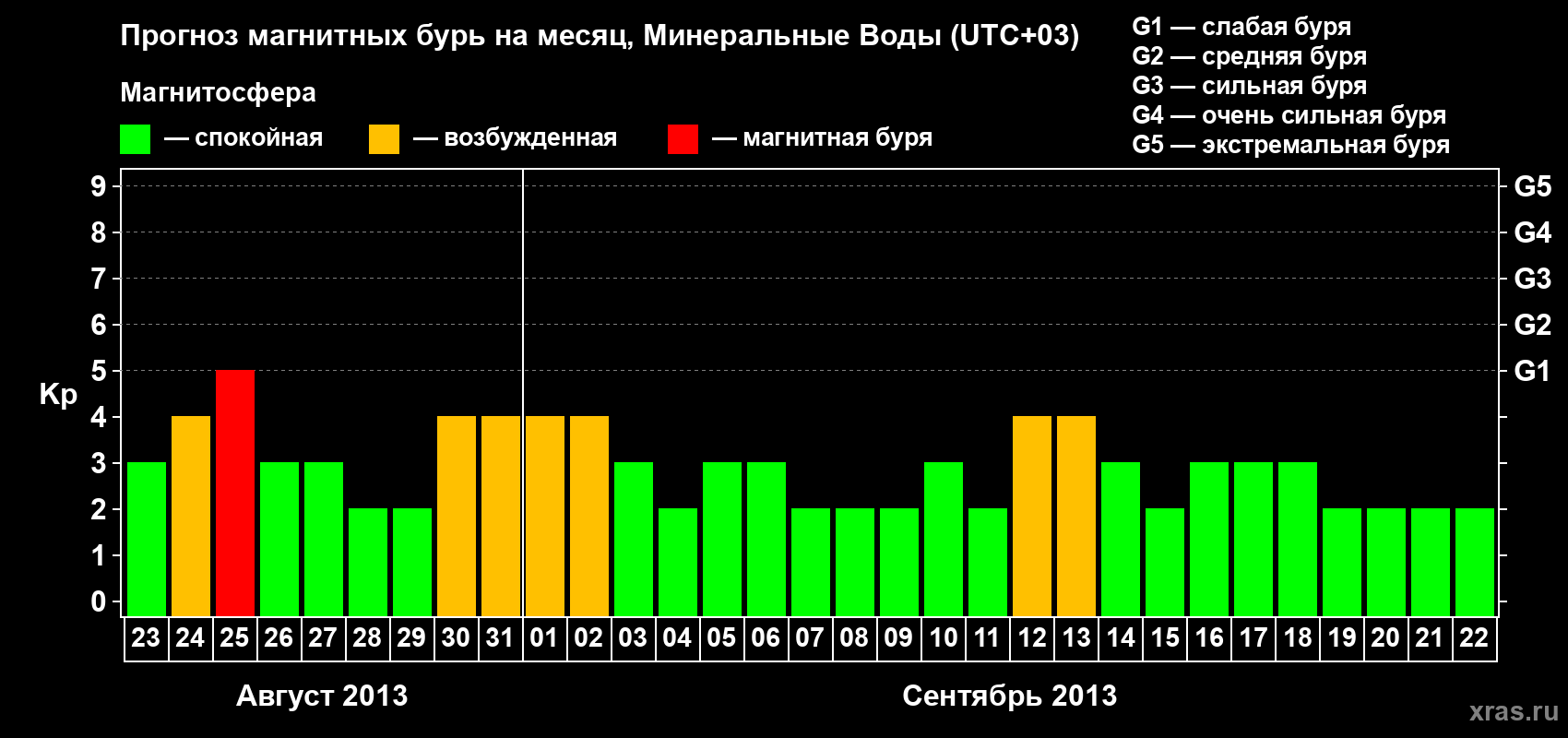 Прогноз магнитных бурь Минеральных Водах — 23 августа 2013 года