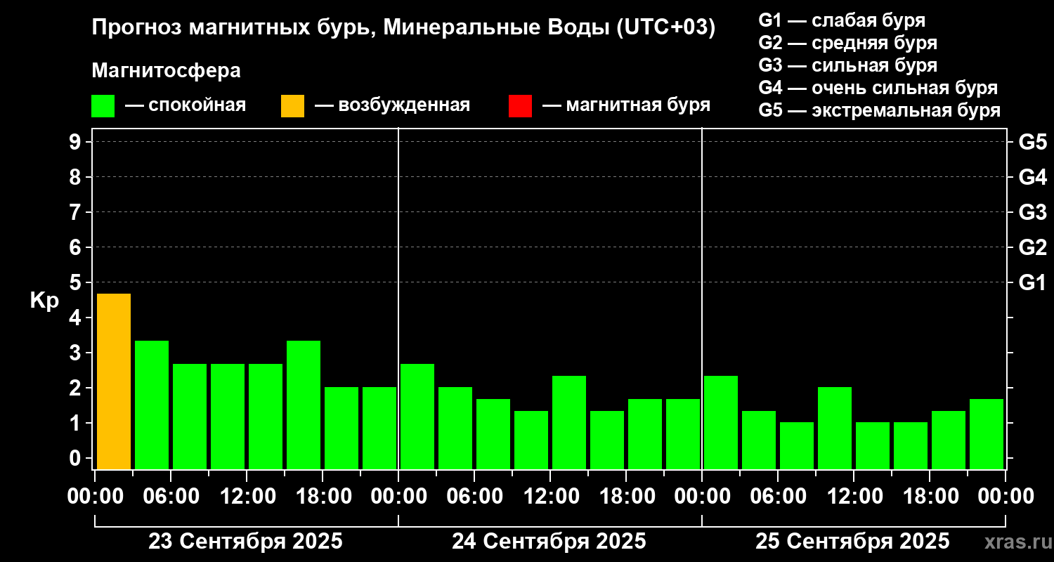 Прогноз магнитных бурь Минеральных Водах — 23 сентября 2025 года