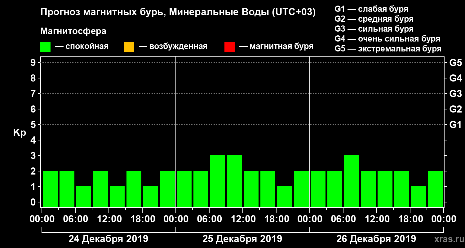 Прогноз магнитных бурь Минеральных Водах на 24 декабря 2019 года