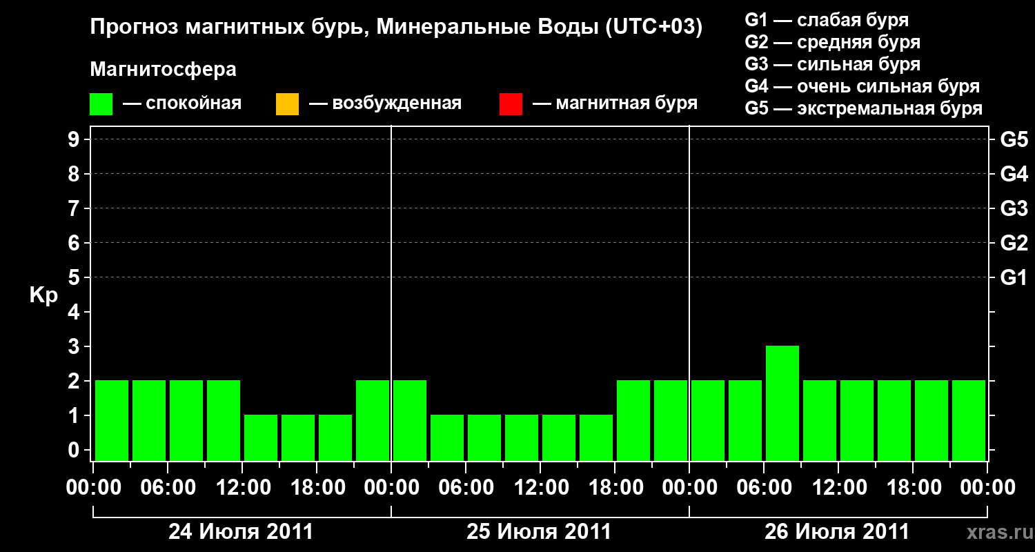 Прогноз магнитных бурь Минеральных Водах — 24 июля 2011 года