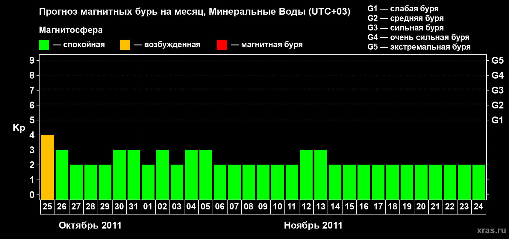 Прогноз магнитных бурь Минеральных Водах — 25 октября 2011 года