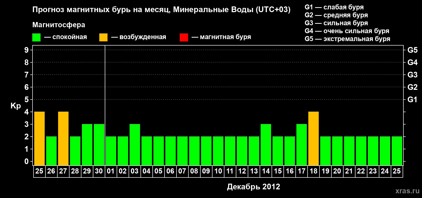 Прогноз магнитных бурь Минеральных Водах — 25 ноября 2012 года