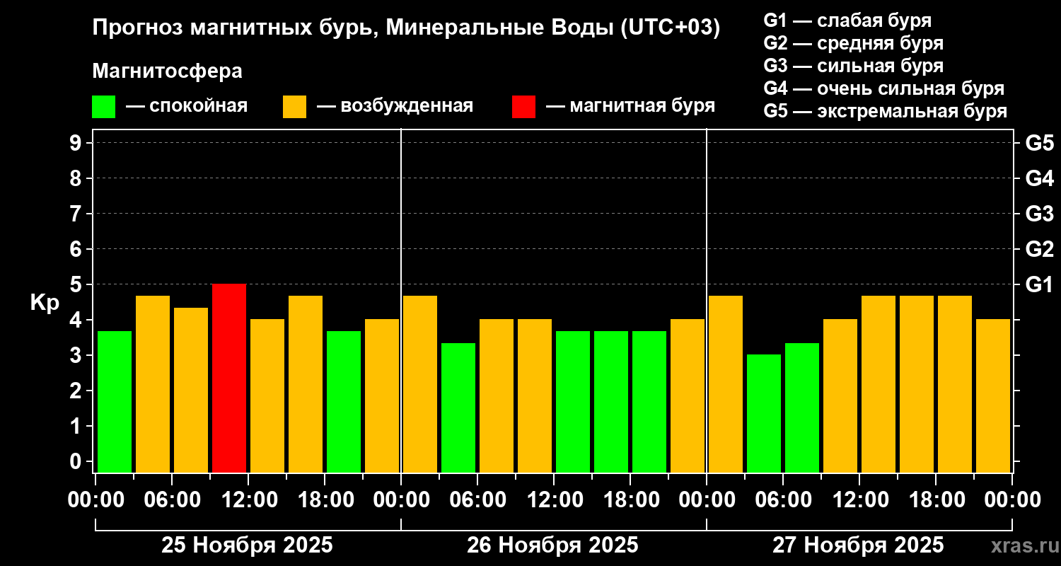 Прогноз магнитных бурь Минеральных Водах — 25 ноября 2025 года