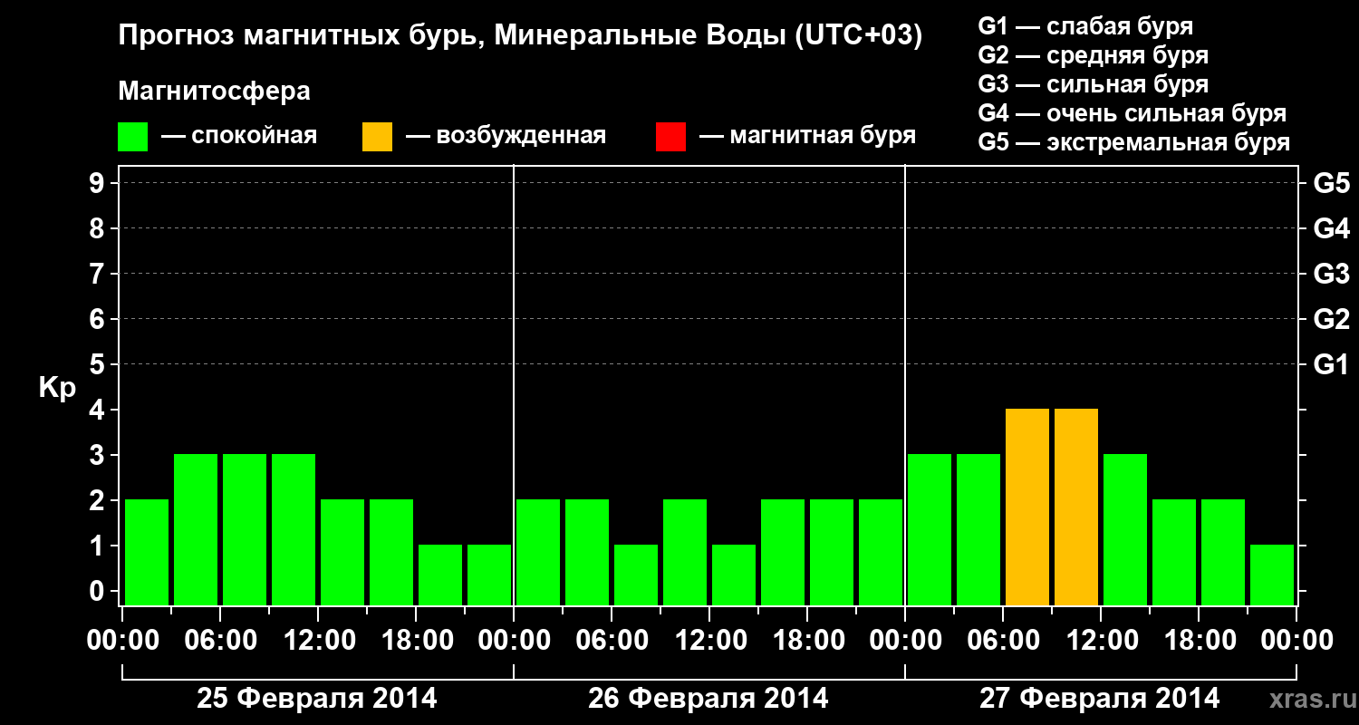 Прогноз магнитных бурь Минеральных Водах — 25 февраля 2014 года