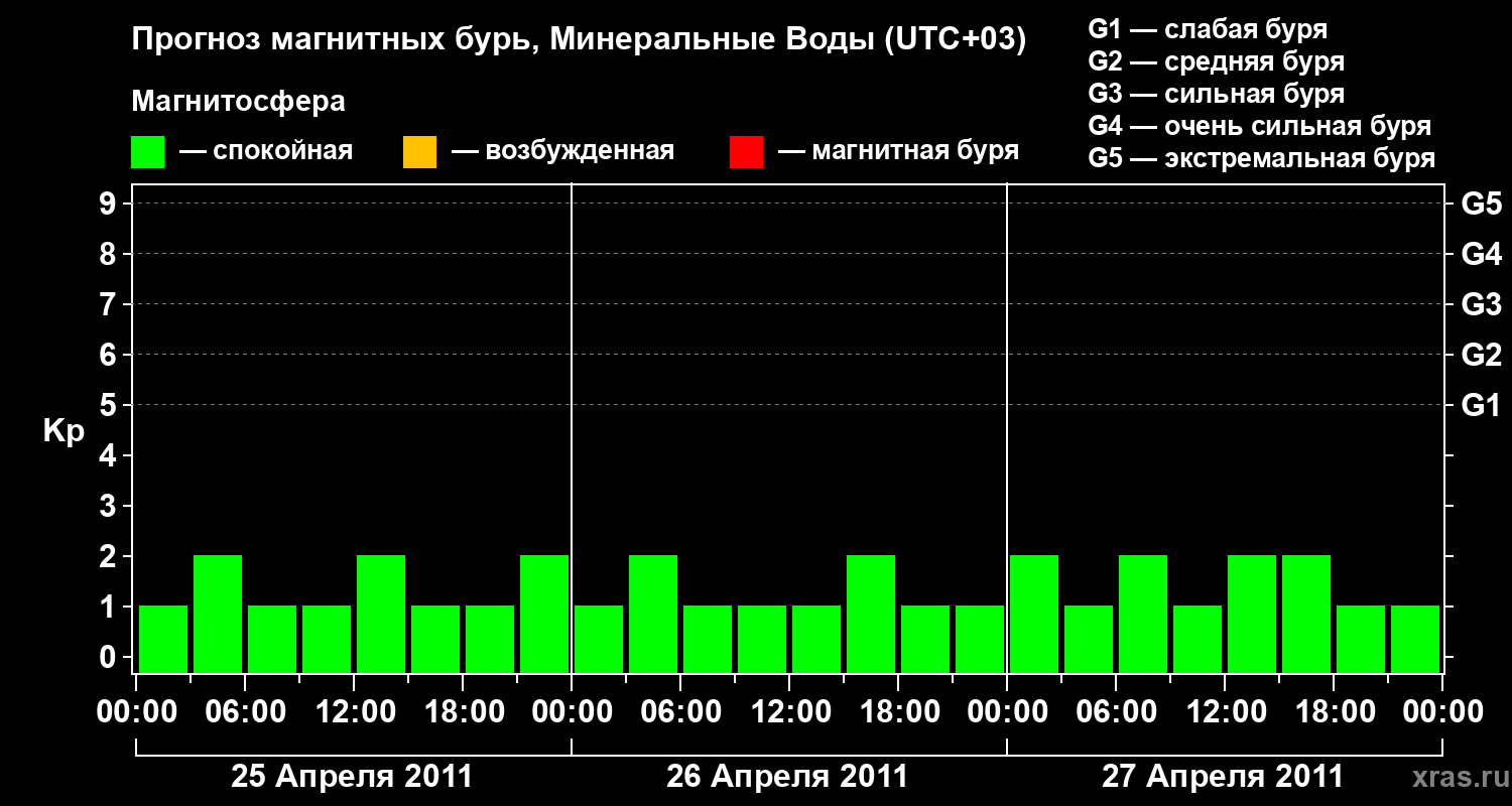 Прогноз магнитных бурь Минеральных Водах — 25 апреля 2011 года