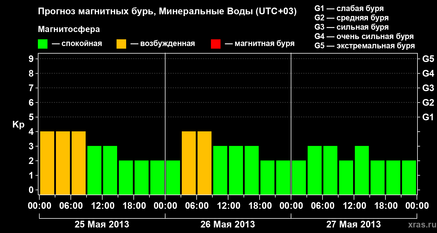 Прогноз магнитных бурь Минеральных Водах — 25 мая 2013 года