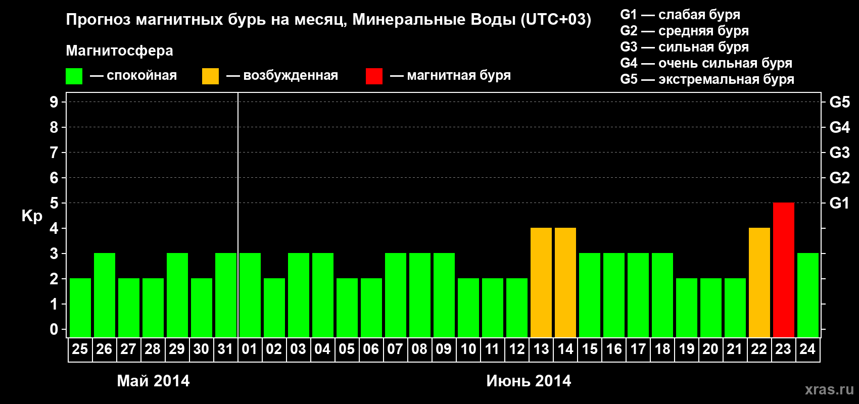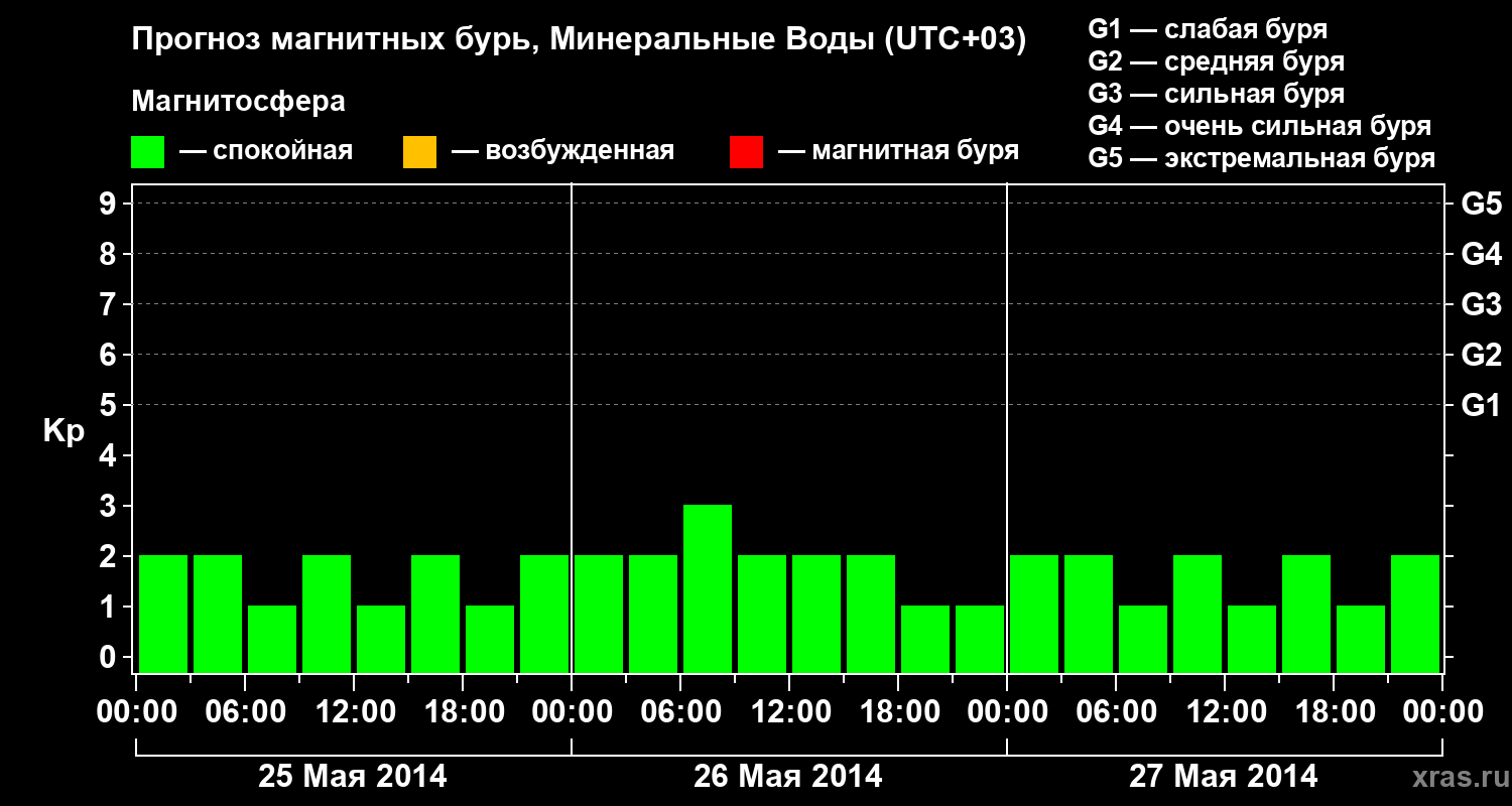 Прогноз магнитных бурь Минеральных Водах — 25 мая 2014 года