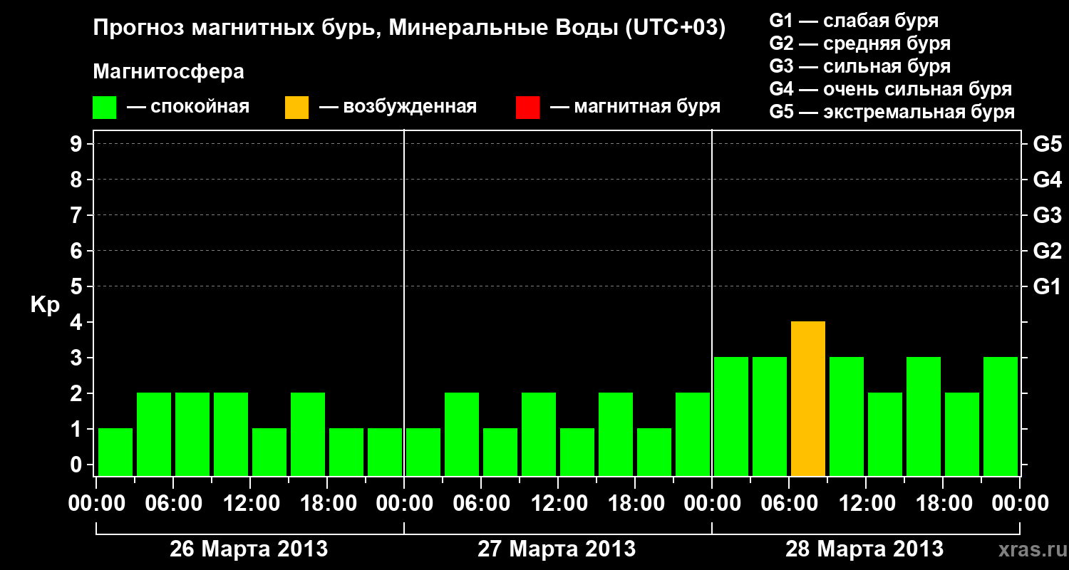 Прогноз магнитных бурь Минеральных Водах — 26 марта 2013 года