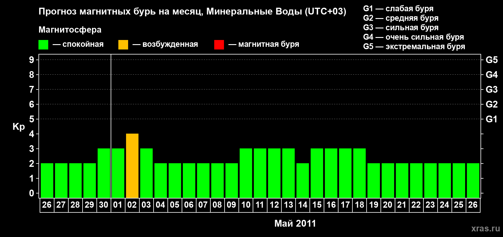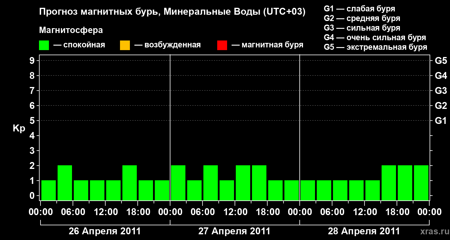 Прогноз магнитных бурь Минеральных Водах — 26 апреля 2011 года