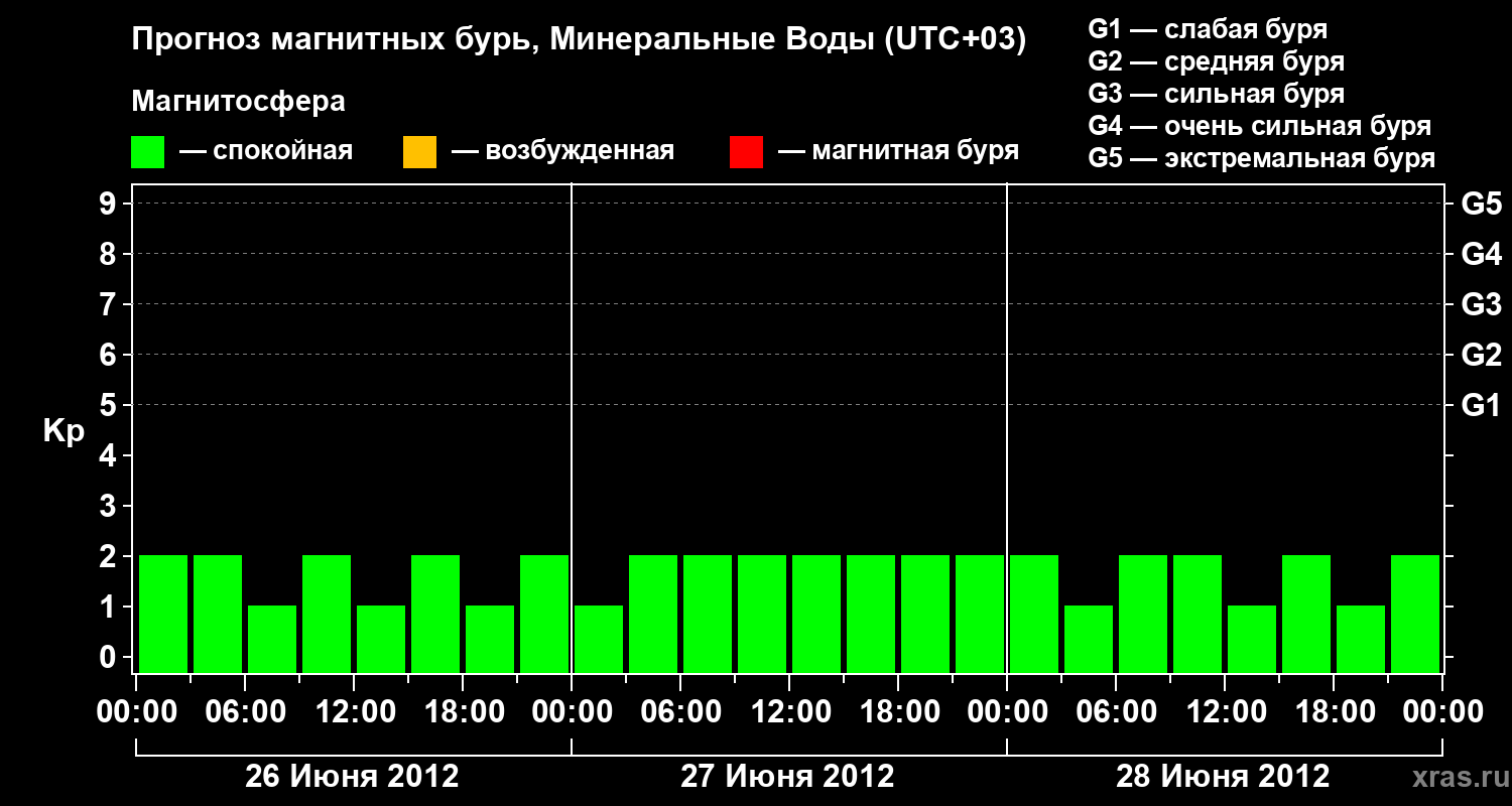 Прогноз магнитных бурь Минеральных Водах — 26 июня 2012 года