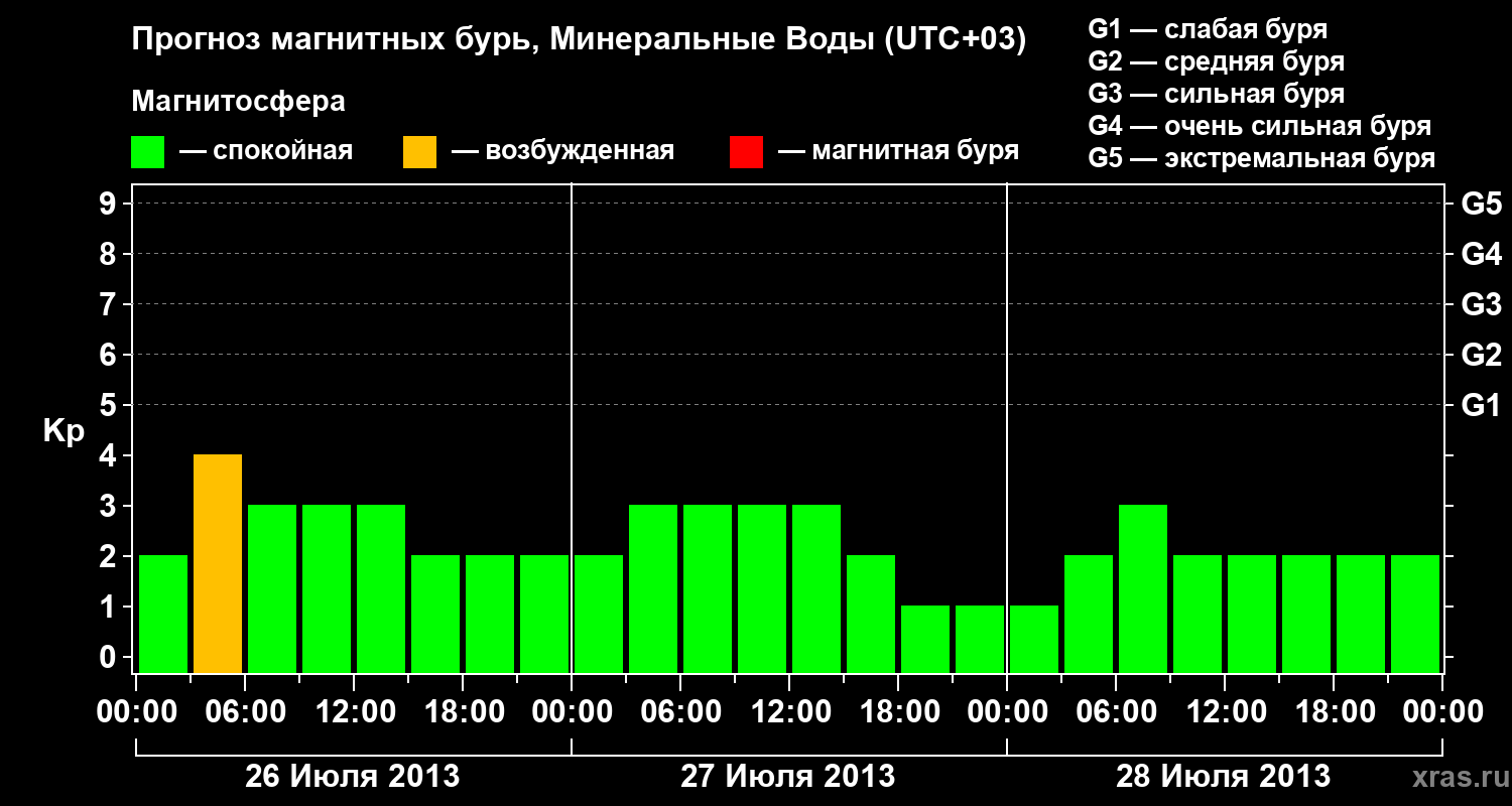 Прогноз магнитных бурь Минеральных Водах — 26 июля 2013 года