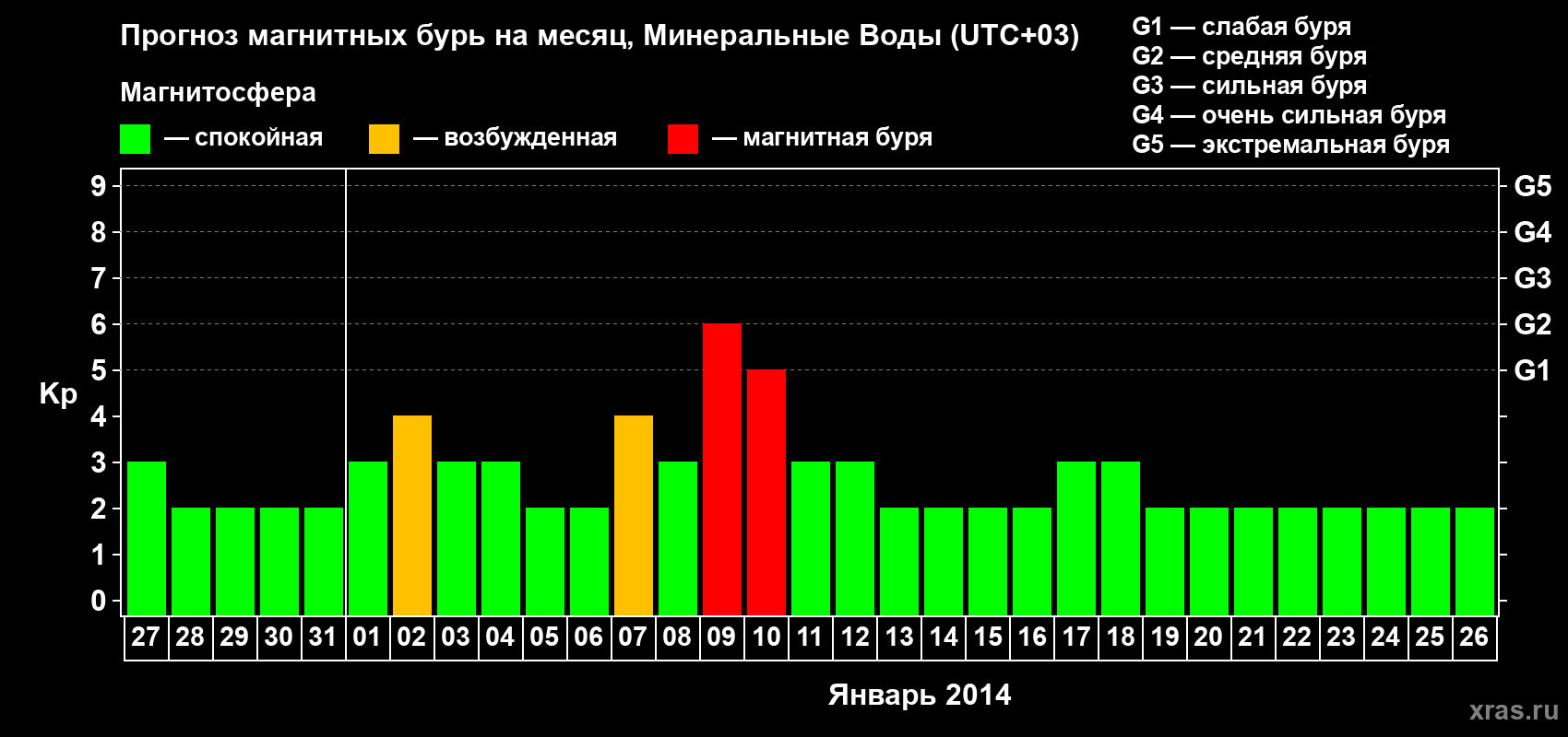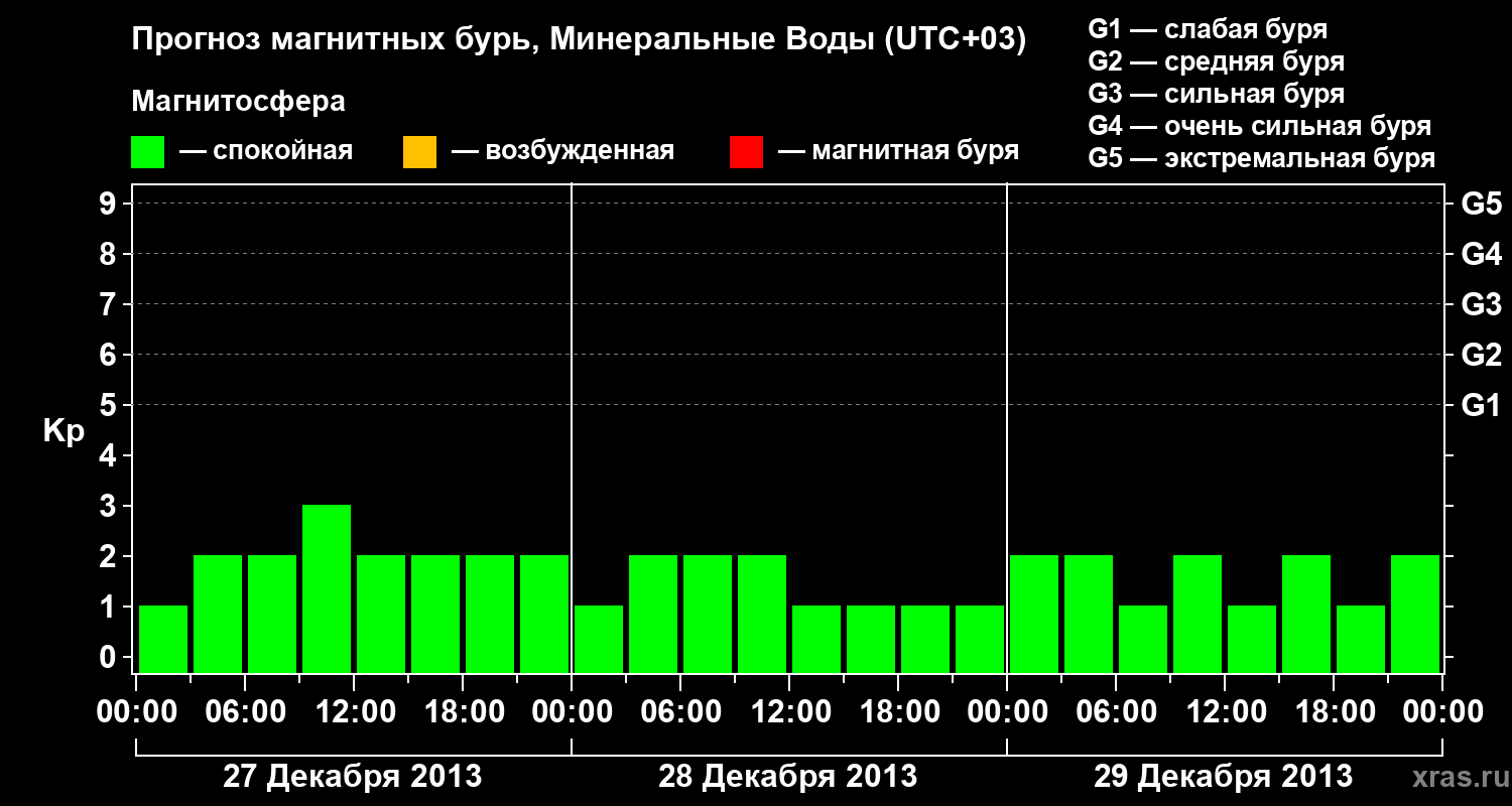 Прогноз магнитных бурь Минеральных Водах — 27 декабря 2013 года