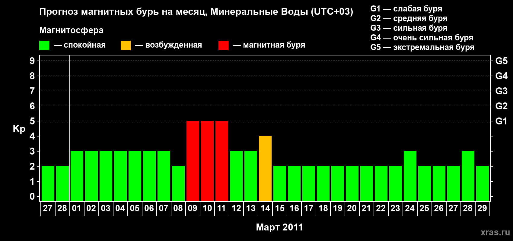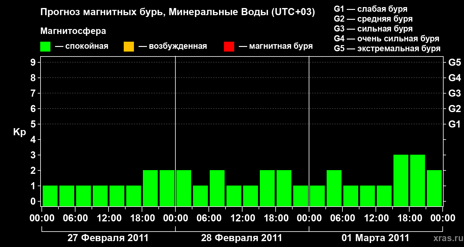 Прогноз магнитных бурь Минеральных Водах — 27 февраля 2011 года