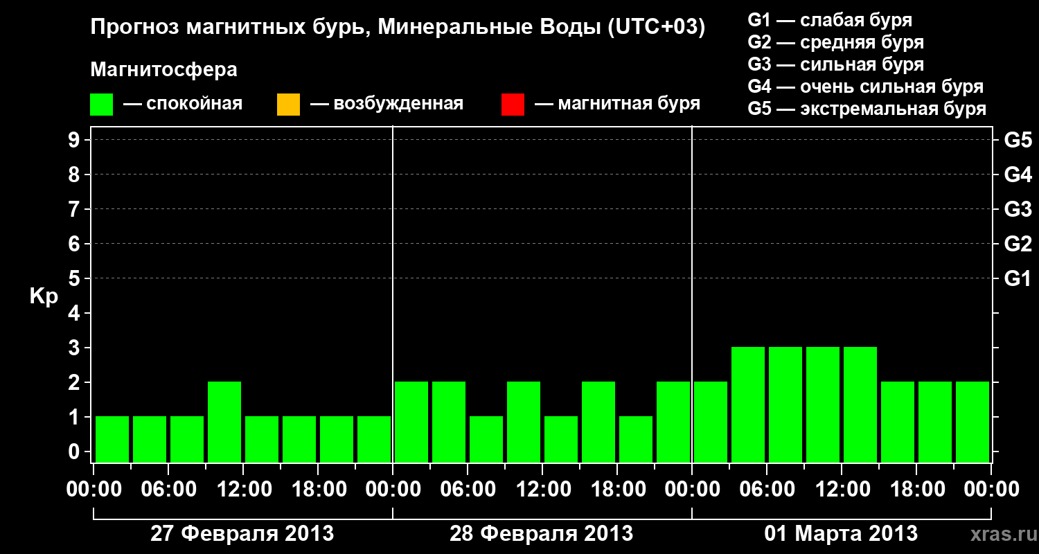 Прогноз магнитных бурь Минеральных Водах — 27 февраля 2013 года