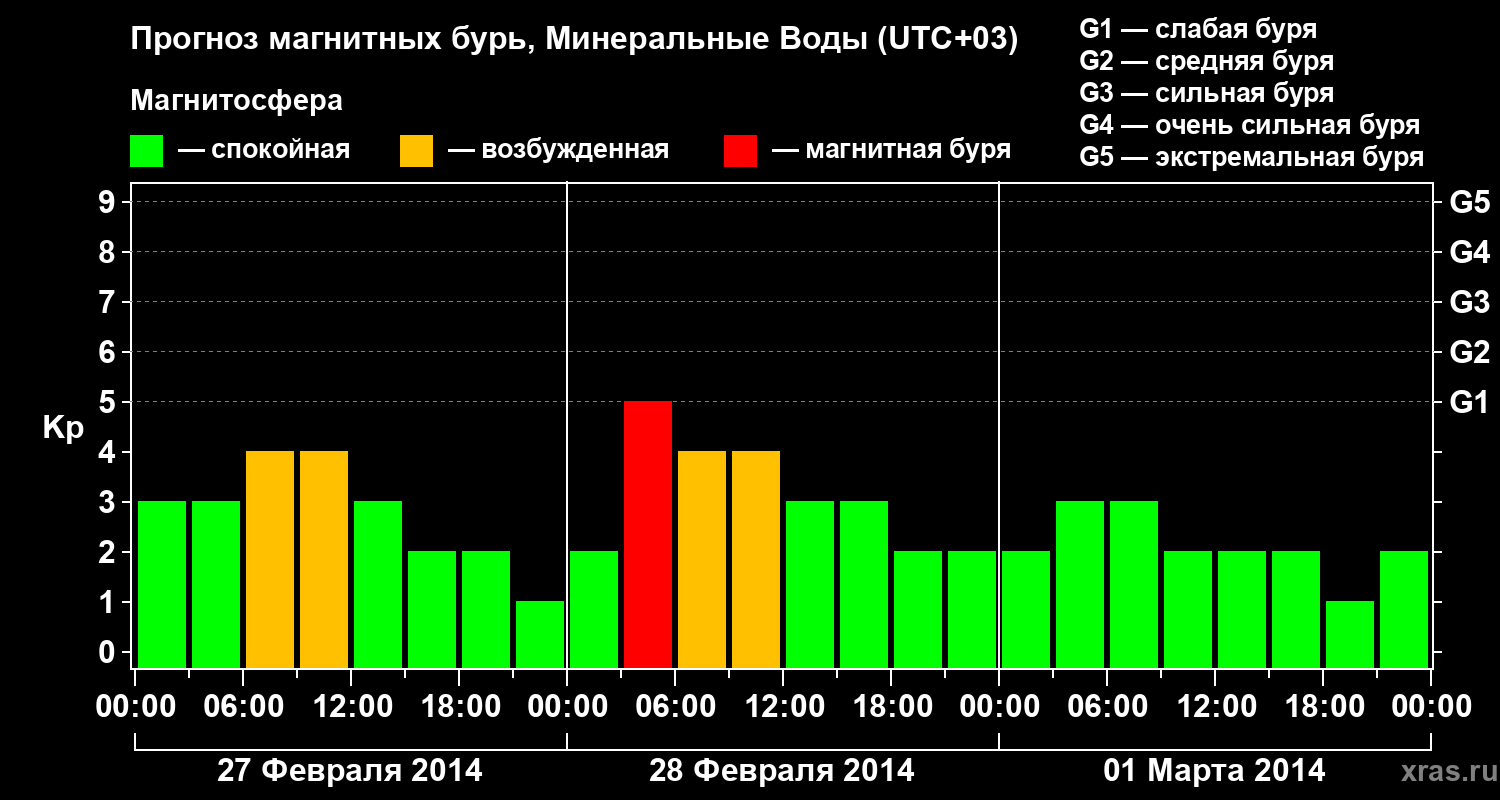Прогноз магнитных бурь Минеральных Водах — 27 февраля 2014 года