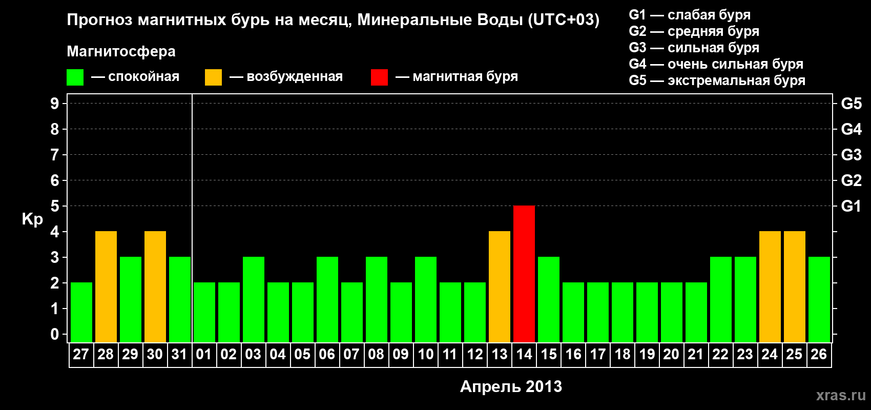 Прогноз магнитных бурь Минеральных Водах — 27 марта 2013 года