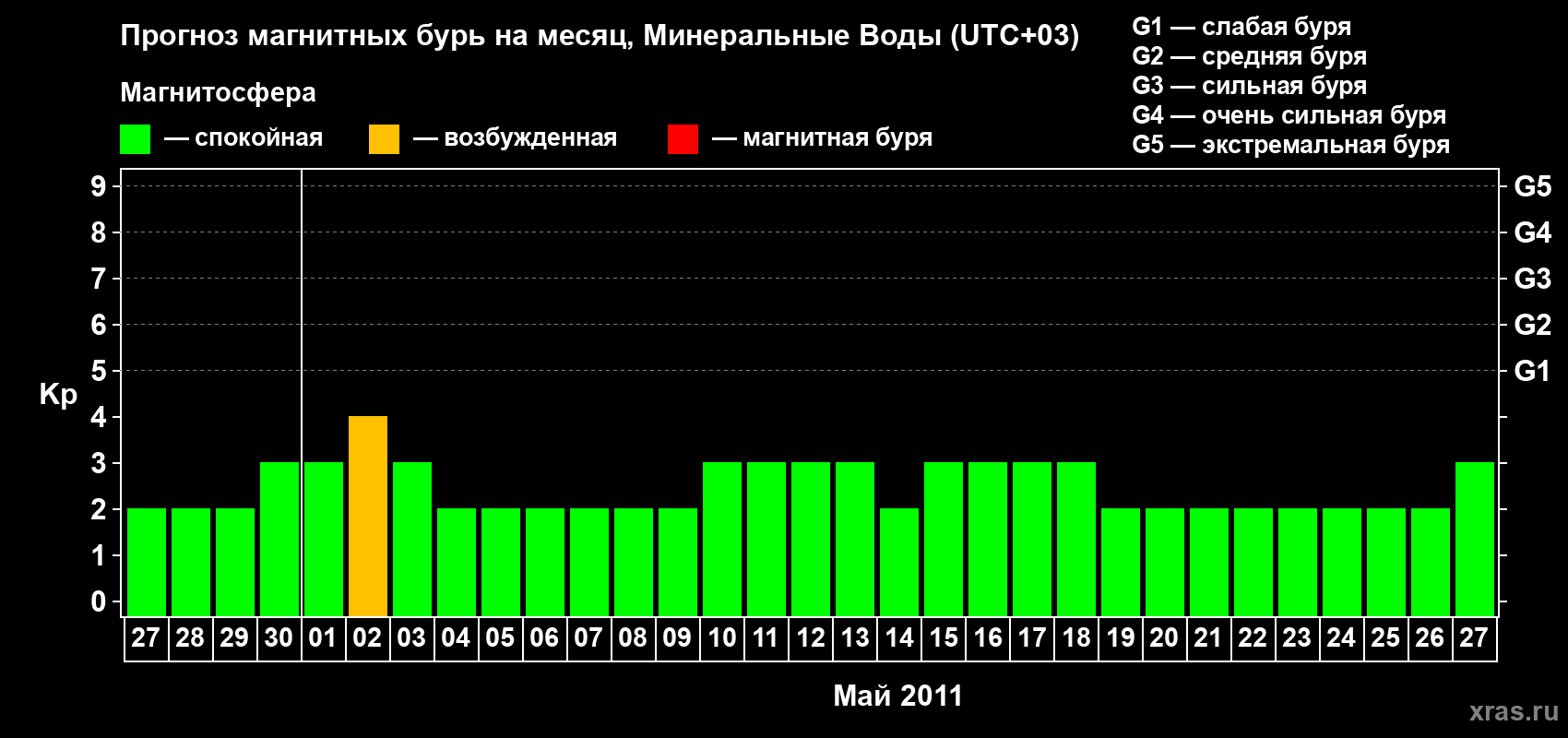 Прогноз магнитных бурь Минеральных Водах — 27 апреля 2011 года
