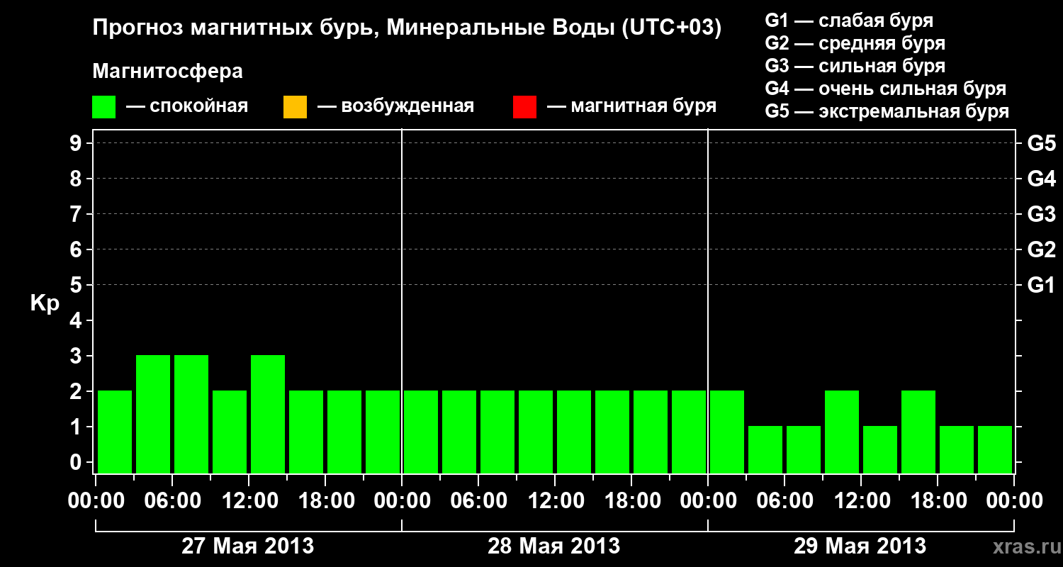 Прогноз магнитных бурь Минеральных Водах — 27 мая 2013 года