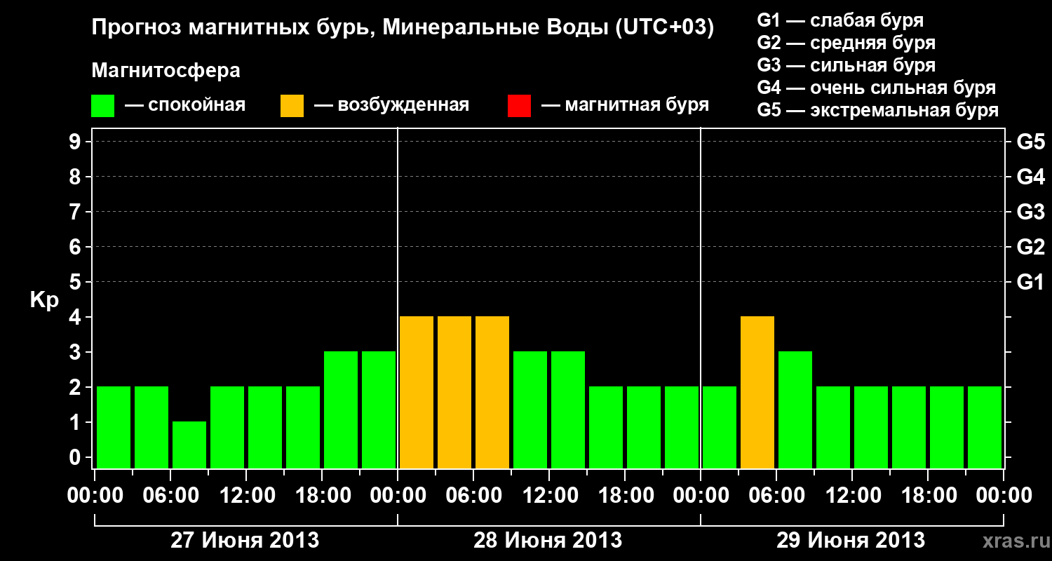 Прогноз магнитных бурь Минеральных Водах — 27 июня 2013 года