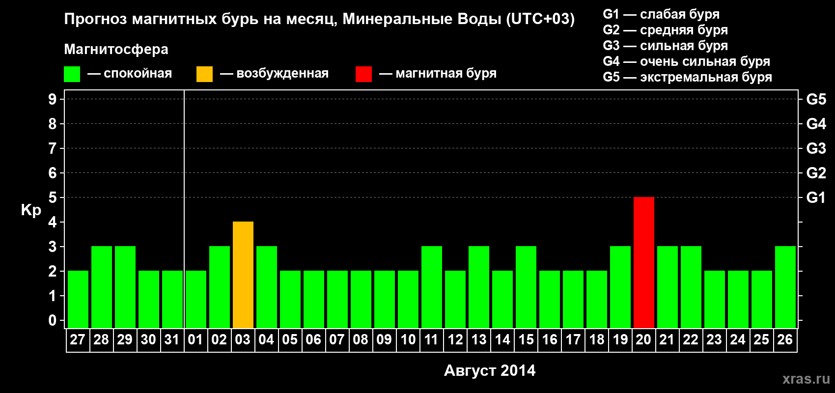 Прогноз магнитных бурь Минеральных Водах — 27 июля 2014 года