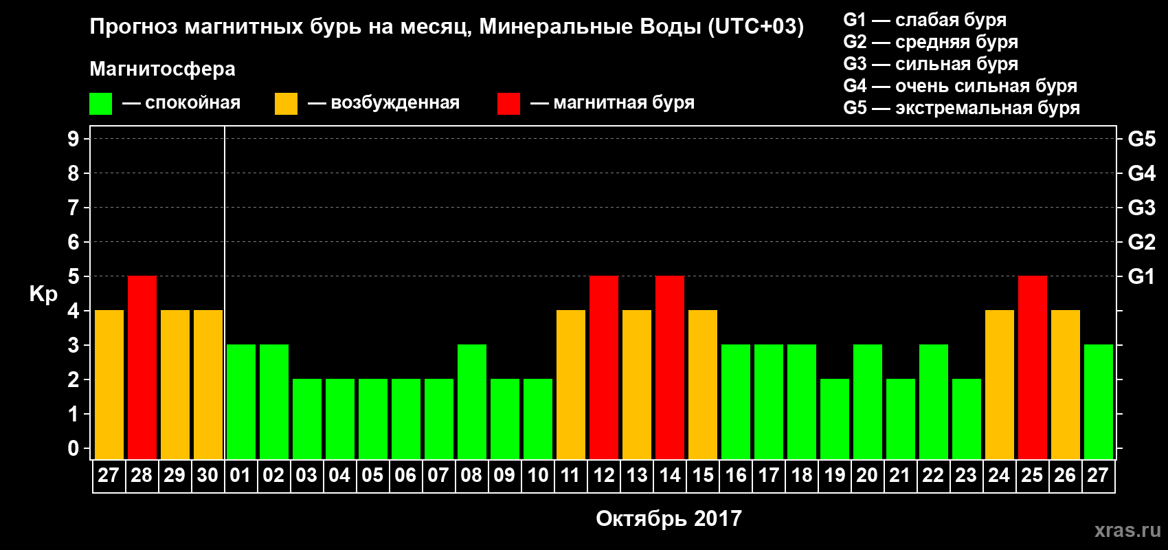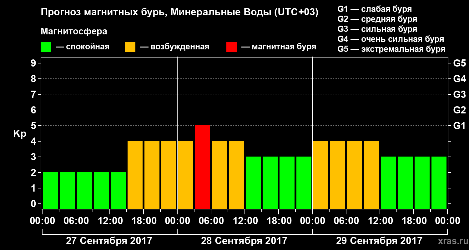 Прогноз магнитных бурь Минеральных Водах — 27 сентября 2017 года