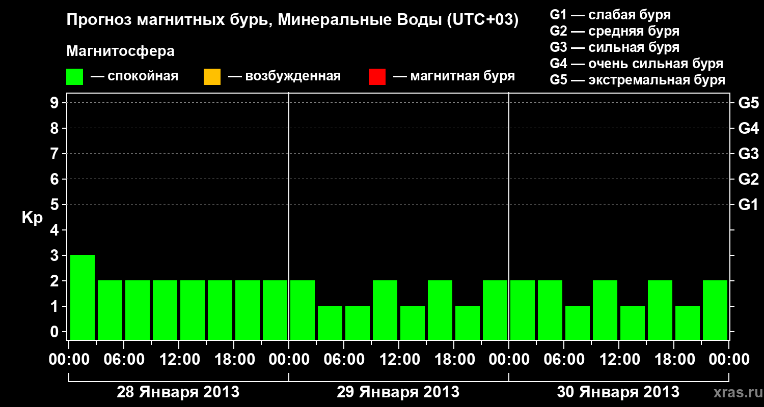 Прогноз магнитных бурь Минеральных Водах — 28 января 2013 года